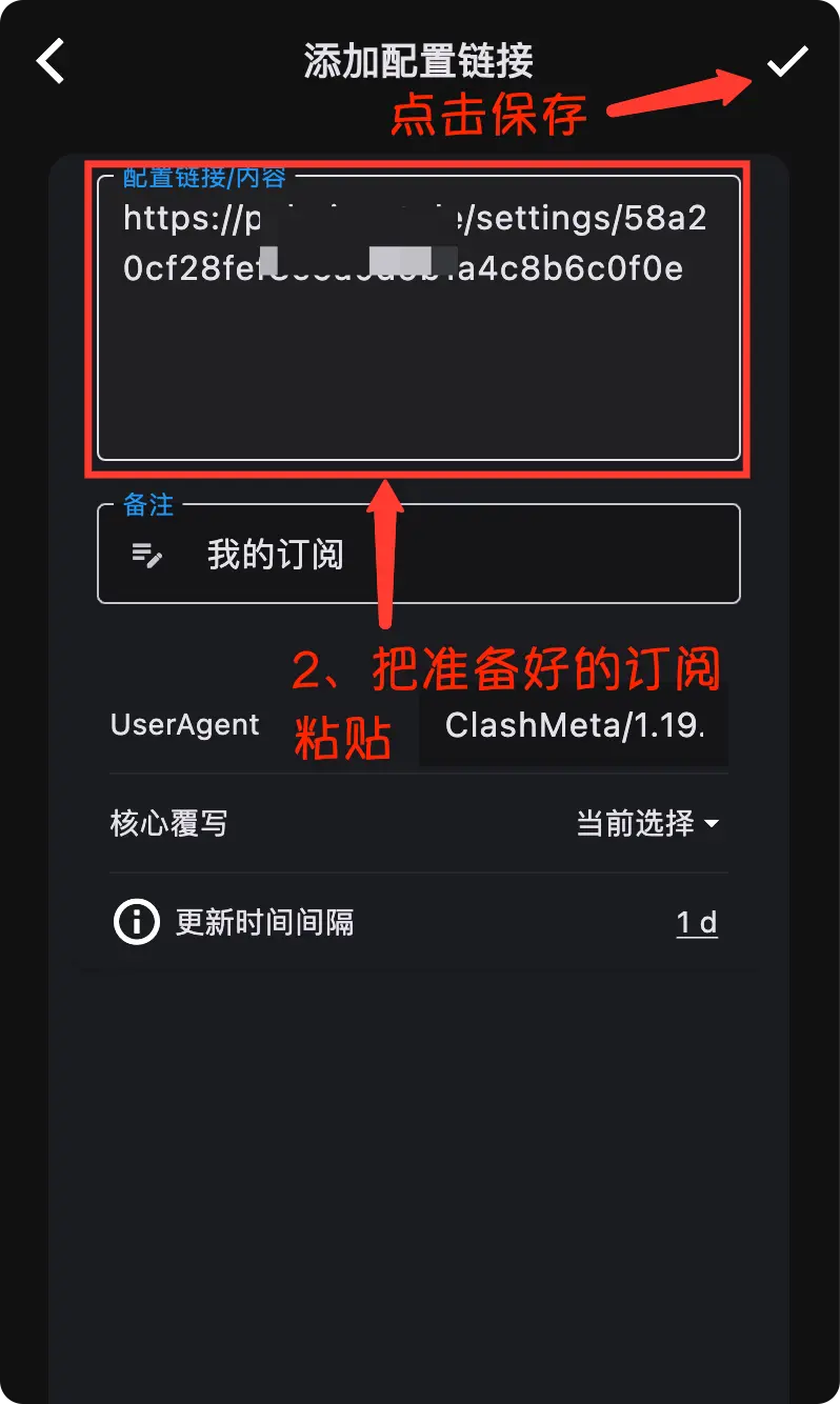 在使用客户端之前,你需要获取 Clash 配置链接。这通常由你的服务提供商提供。 如果还没有订阅配置,了解怎么选择适合自己的订阅或者直接点此注册领取1G试用资格↗